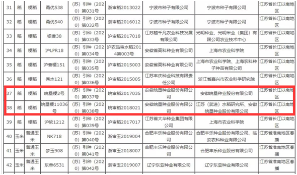 2020年3月6日,江蘇省農(nóng)業(yè)農(nóng)村廳第1號公告公布,由安徽皖墾種業(yè)股份有限公司育成的皖墾粳2號,安徽皖墾種業(yè)股份有限公司和江蘇武進(jìn)水稻研究所合作選育的 皖墾粳11036符合備案要求,通過引種備案。