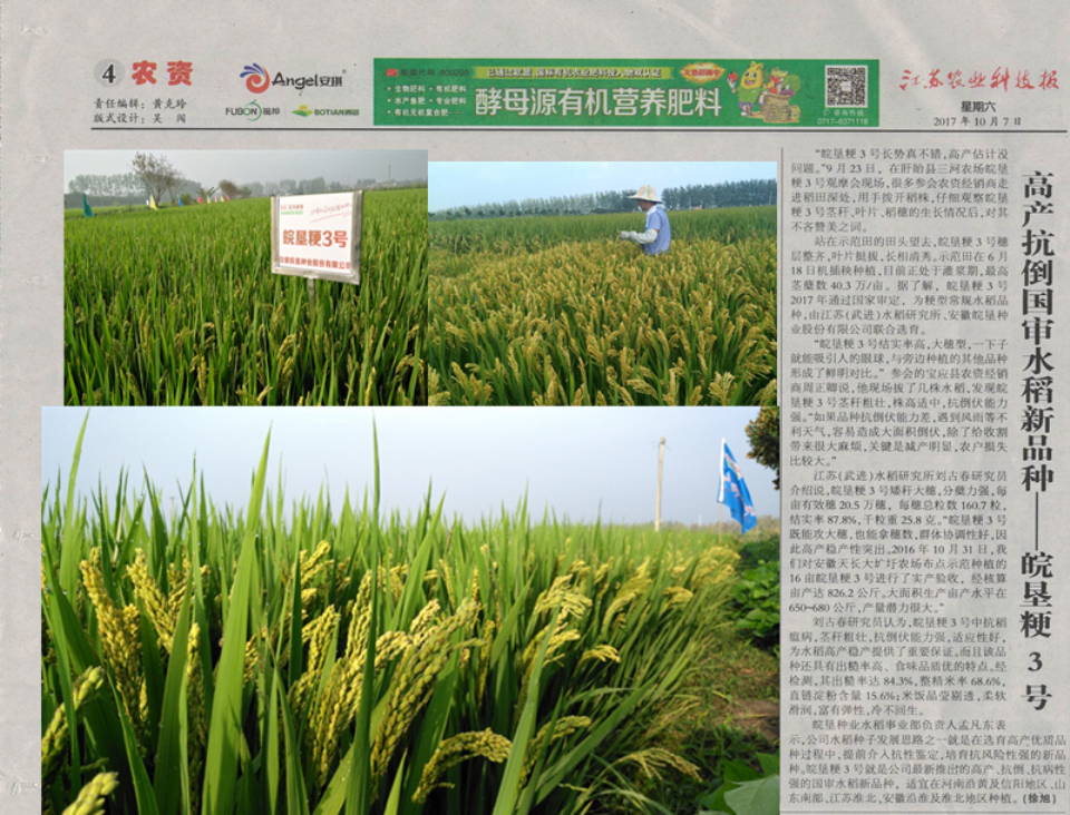 【品種主要性狀】:粳型常規(guī)水稻品種。黃淮粳稻區(qū)種植全生育期平均156.9天,比對(duì)照徐稻3號(hào)晚熟1.4天。株高95.5厘米,穗長(zhǎng)15.6厘米,每畝有效穗數(shù)20.5萬(wàn),每穗總粒數(shù)160.7粒,結(jié)實(shí)率87.8%,千粒重25.8克。抗性:稻瘟病綜合指數(shù)兩年分別為4.0和3.7,穗頸瘟損失率最高級(jí)3級(jí),條紋葉枯病最高級(jí)5級(jí),中抗稻瘟,中感條紋葉枯病。主要米質(zhì)指標(biāo):整精米率68.6%,堊白粒率29%,堊白度5.9%,直鏈淀粉含量15.6%,膠稠度65 mm。