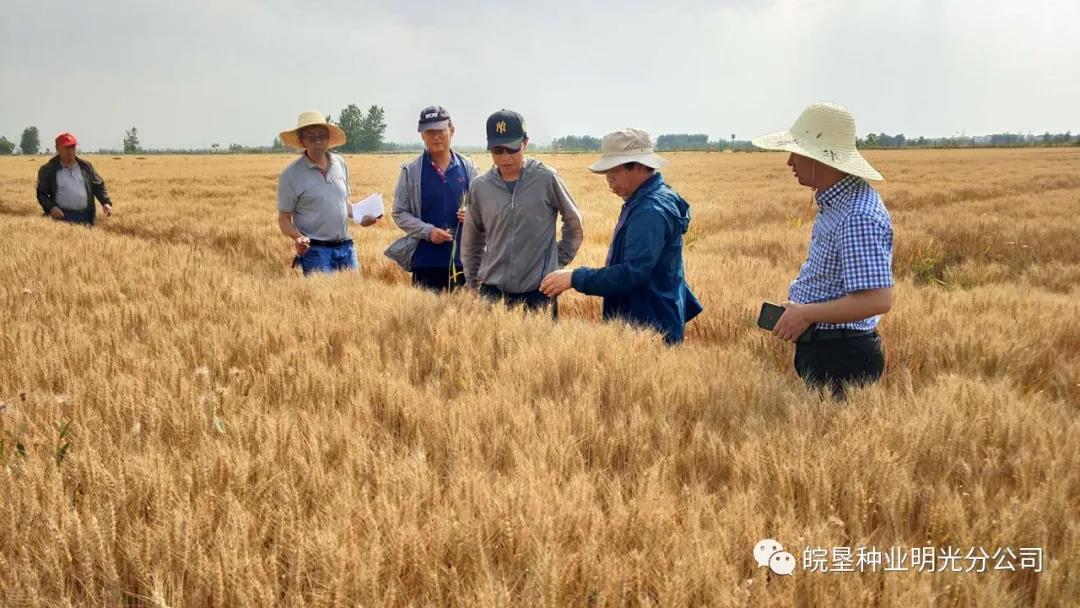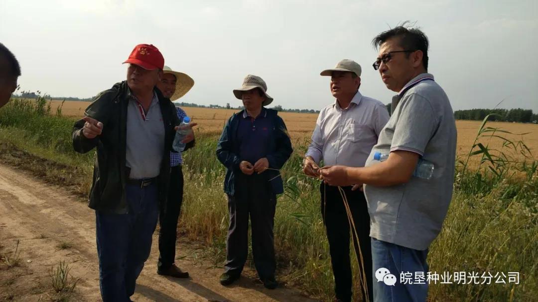 5月28日,皖墾種業(yè)領(lǐng)導(dǎo)任傳軍率生產(chǎn)技術(shù)部相關(guān)同志到明光分公司驗(yàn)收小麥田間去雜去劣工作。