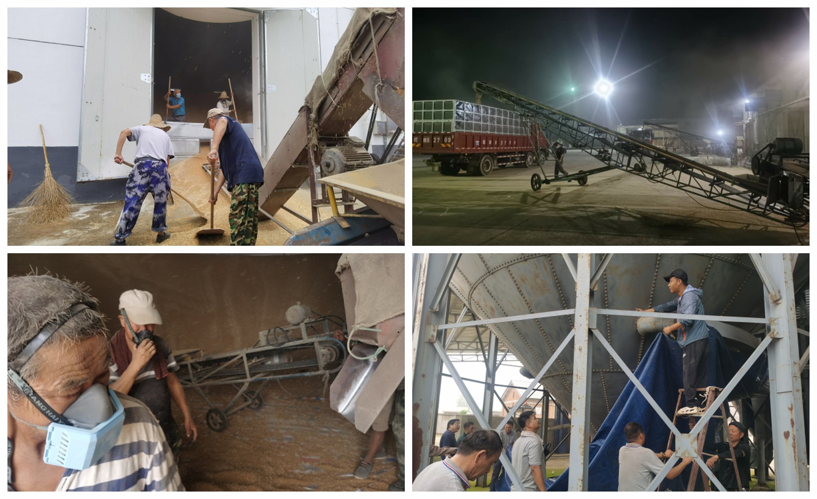 明光分公司三部位于行蓄洪區(qū)內(nèi),存放有淮麥44、青農(nóng)3號(hào)、皖墾麥1號(hào)和煙農(nóng)19等品種,庫(kù)存數(shù)量分別達(dá)到360萬(wàn)斤、200萬(wàn)斤、80萬(wàn)斤和415萬(wàn)斤。其中,金屬倉(cāng)主要存放煙農(nóng)19,其余品種均存放在三部的房式倉(cāng)庫(kù)中。此外,在一墻之隔的潘村湖農(nóng)場(chǎng)公司糧庫(kù)內(nèi),明光分公司還存放了720萬(wàn)斤訂單糧。因當(dāng)?shù)卣艚o轉(zhuǎn)運(yùn)時(shí)間有限,致使轉(zhuǎn)運(yùn)任務(wù)變得十分艱巨。為迅速搶運(yùn)種子等物資,在李昂等經(jīng)營(yíng)層的帶領(lǐng)下,明光分公司全員在崗,明確分工,壓實(shí)責(zé)任,充分把握搶運(yùn)黃金72小時(shí),不分晝夜加快搶運(yùn)節(jié)奏。分公司調(diào)運(yùn)人力物力,集中搶運(yùn)了淮麥44等主推品種。同時(shí),分公司小麥穗行穗系等育種材料及設(shè)備儀器也及時(shí)得到搶運(yùn)。