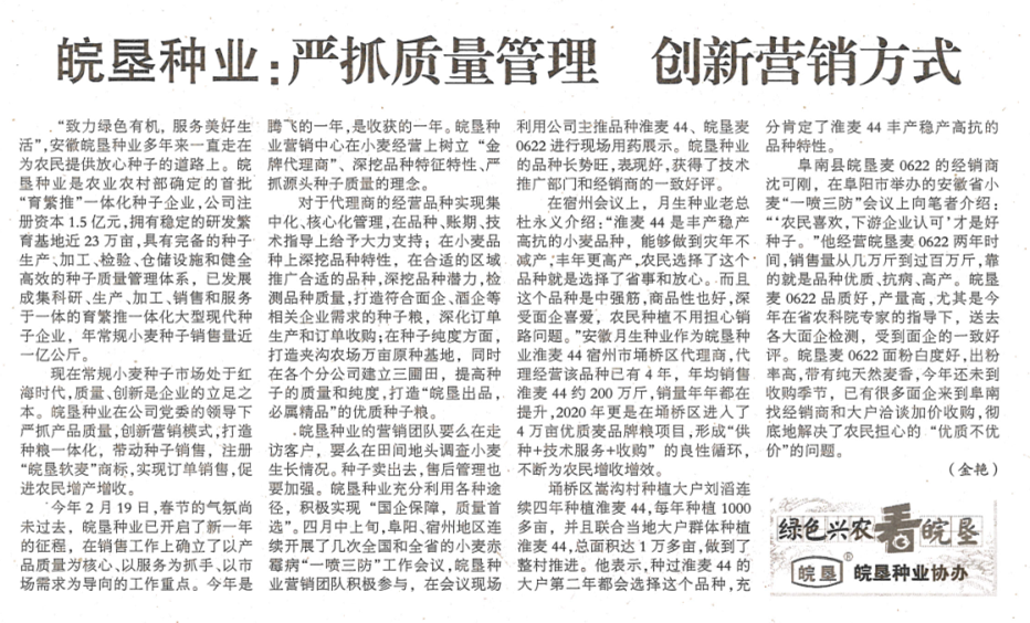 皖墾種業(yè):嚴(yán)抓質(zhì)量管理 創(chuàng)新營(yíng)銷方式