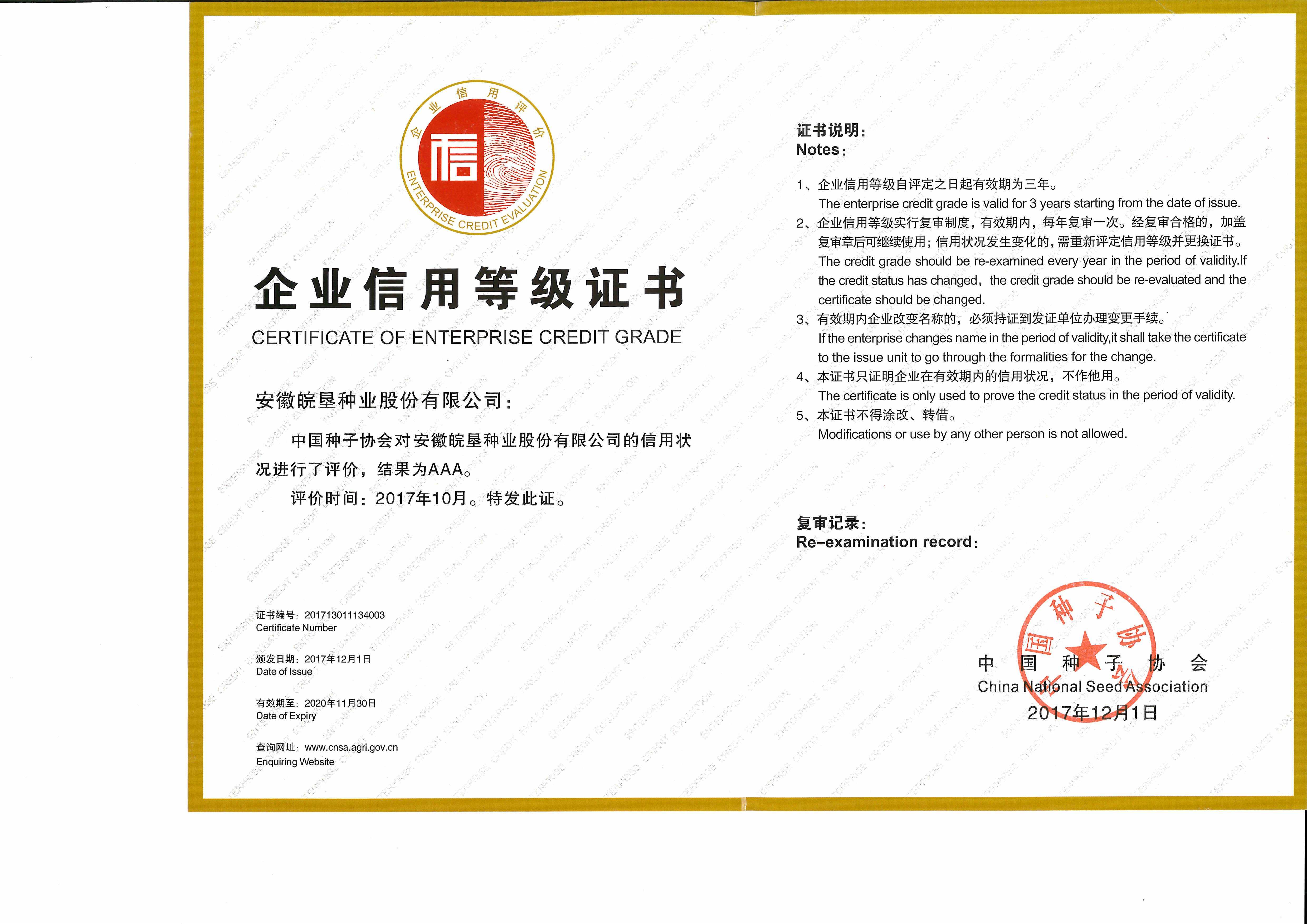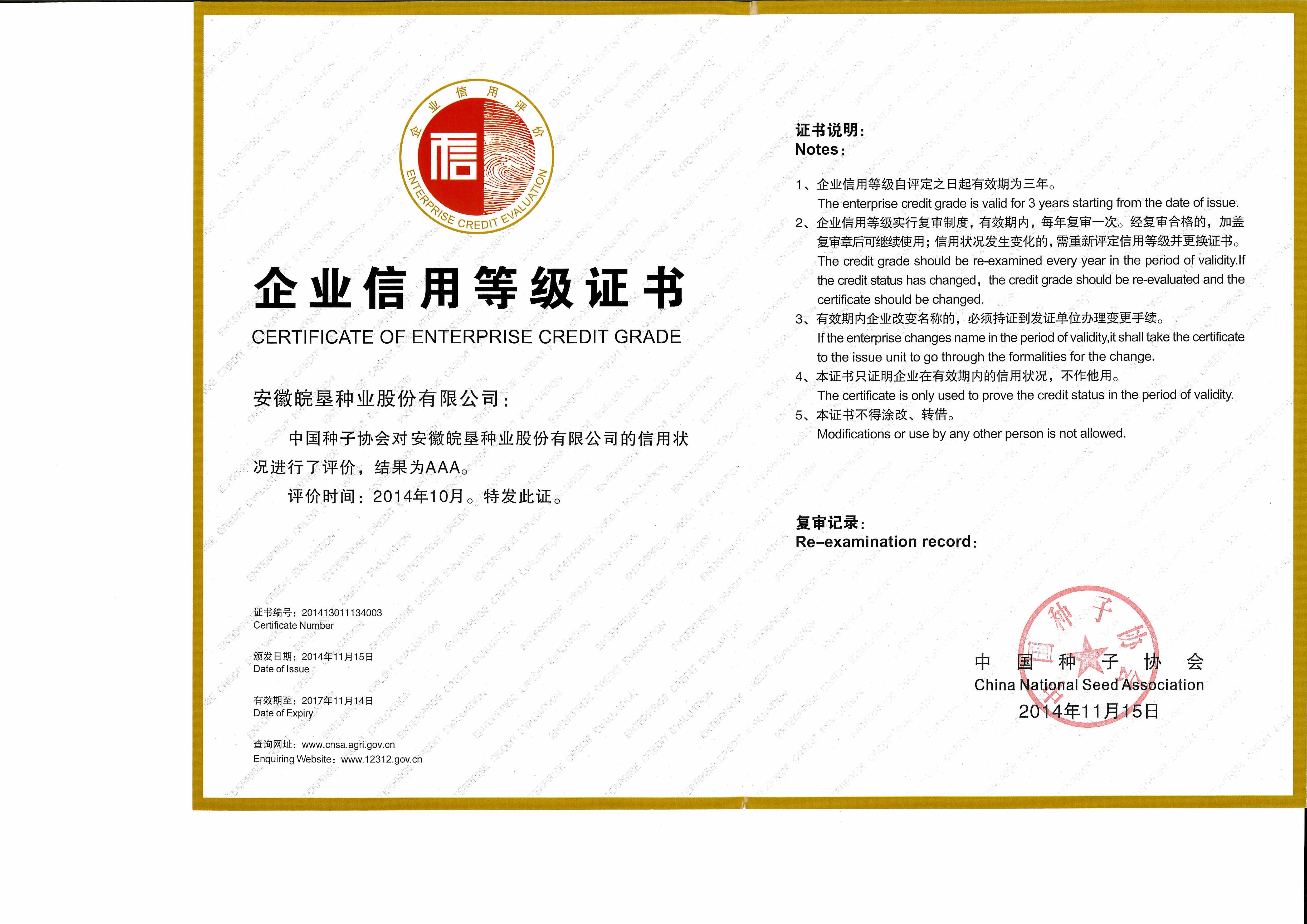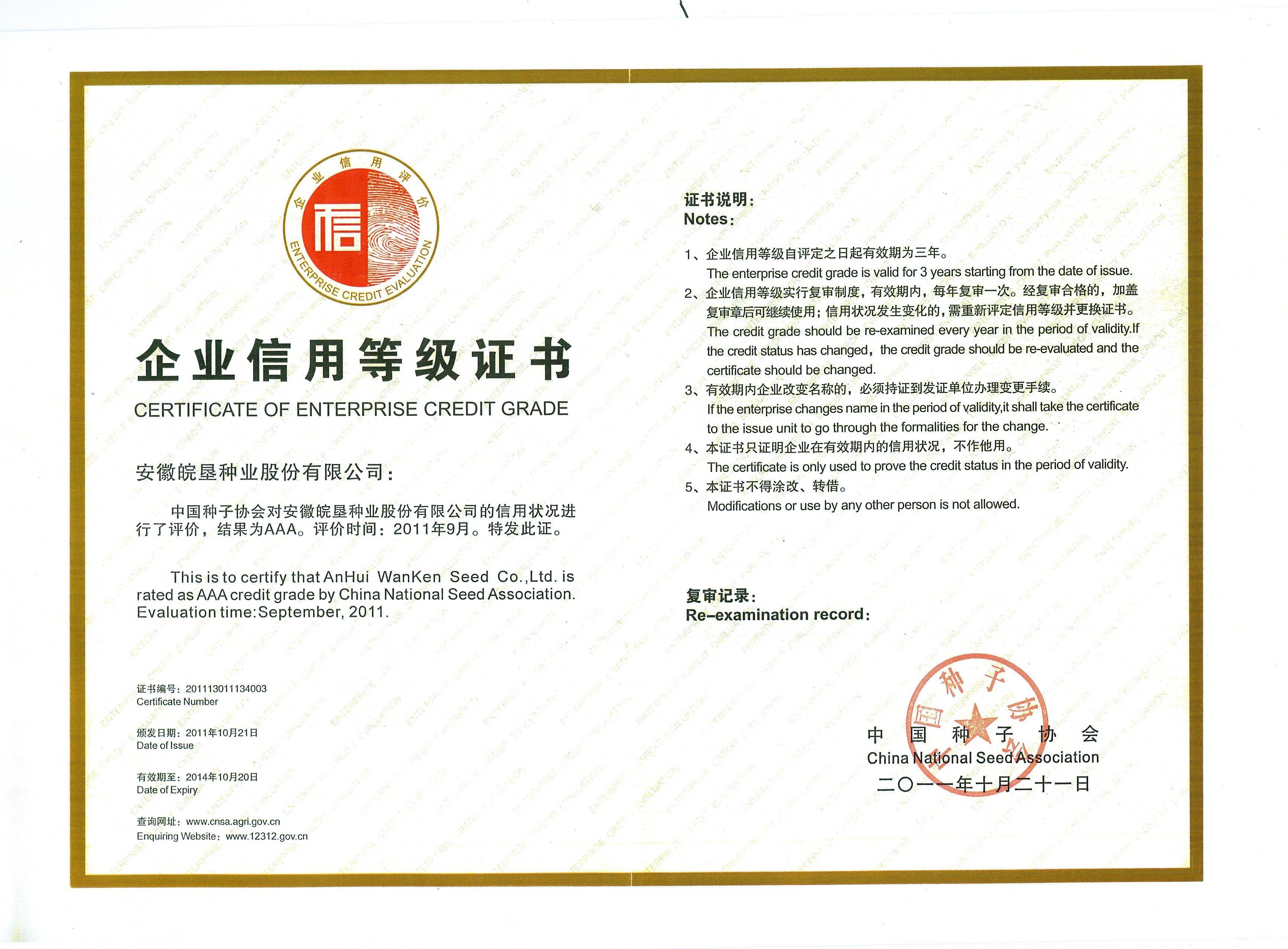 信用等級證書