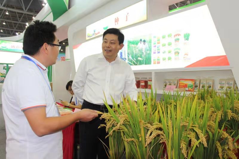 10月10日下午,合肥農(nóng)交會上,張曙光副省長帶隊巡視場館。來到安徽農(nóng)墾展廳后,張曙光認(rèn)真了解皖墾種業(yè)小麥、水稻種子新品種研發(fā)情況,仔細(xì)詢問了剛喜獲金獎的皖墾11036稻米新品種種植推廣情況。在水果展區(qū),張省長拿起一個碭山果園場的翡翠酥梨,掂分量、觀品相、看顏色,夸贊農(nóng)墾水果種植水平高,又了解了水果深加工情況。集團(tuán)公司黨委書記、董事長詹先豪陪同查看農(nóng)墾展廳并匯報了今年的參展情況,集團(tuán)公司工會主席姜三豹陪同.